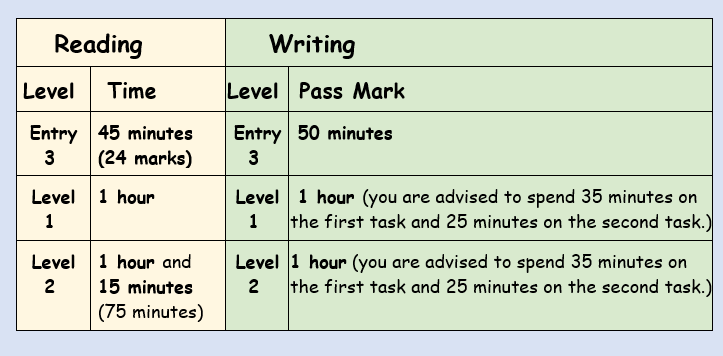 At Level 1 and Level 2, you will have 1 hour in which to complete 2 written tasks.